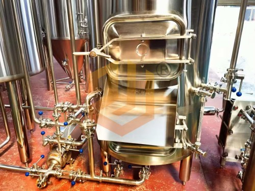 這套設(shè)備的整體配置屬于比較高小型精釀啤酒設(shè)備的糖化系統(tǒng),采用3體4器的設(shè)計(jì)方案,整套設(shè)備的配置有糖化/煮沸鍋、過(guò)濾槽、旋沉槽、熱水鍋組成。